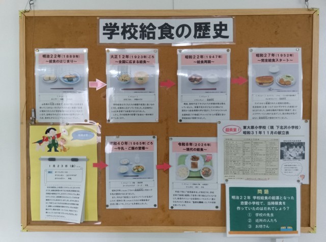 さて、今日から全国学校給食週間です。掲示物もありますので、ご覧ください。(副校長)