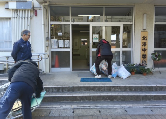 リヤカーで運んでくださった下北沢小学校の主事の皆様、ありがとうございます。(副校長)