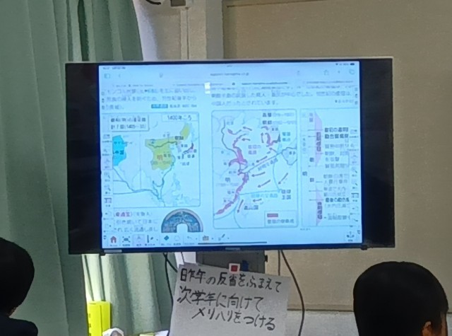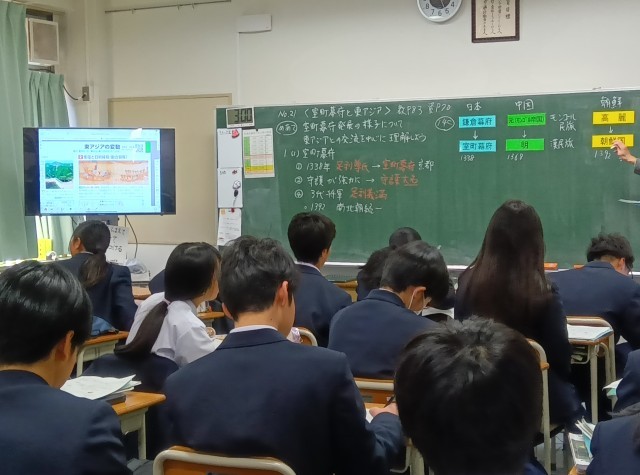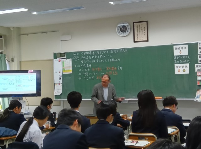 勘合貿易によって、室町幕府が儲けた仕組みについて学びました。(副校長)