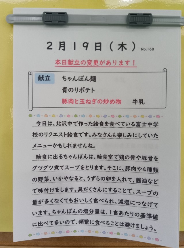 今日も調理員さん、ごちそうさまでした。(副校長)