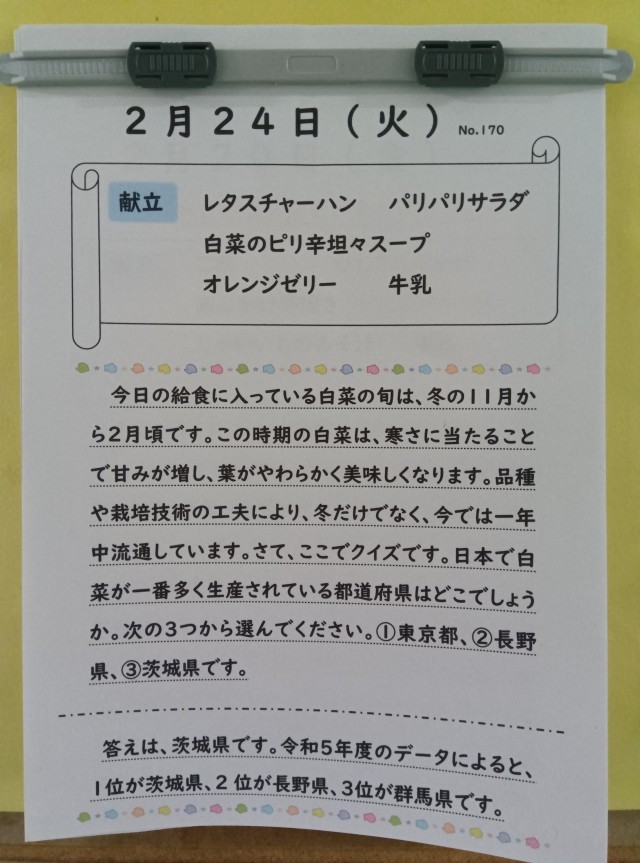 今日も調理員さん、ごちそうさまでした。(副校長)