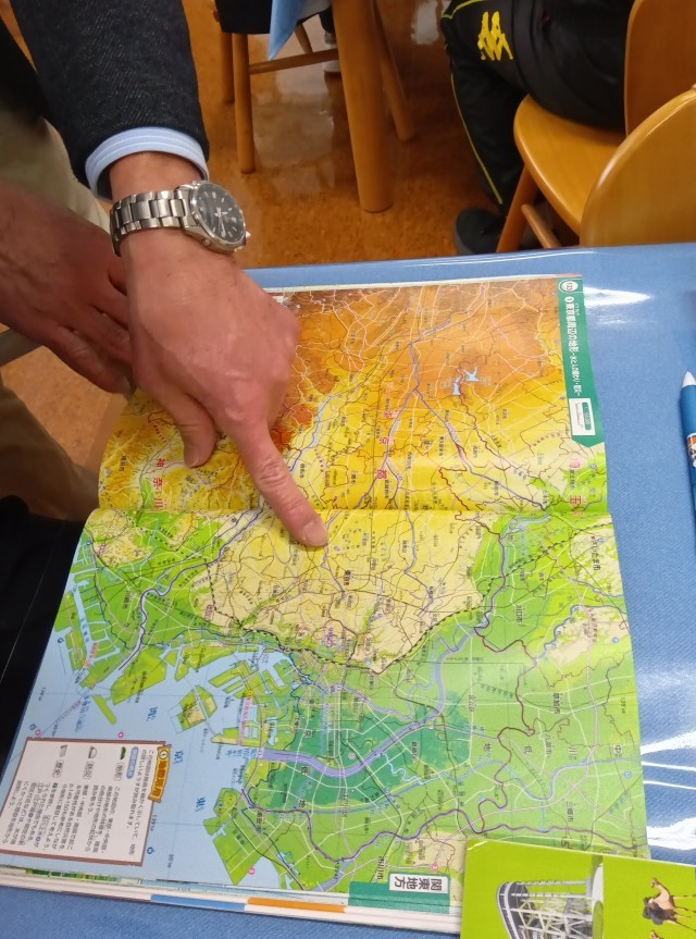 玉川上水の建設計画について、ビデオを視聴したり、地図を確認したりして学んでいます。(副校長)