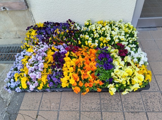 写真は、明日の花壇ボランティアのための花の苗です。この花を植えたプランターが卒業生を送り出す花道になります。今回は、保護者の皆様にもお声掛けしています。保護者会の前にお時間のある方はご協力をお願いいたします。(副校長)