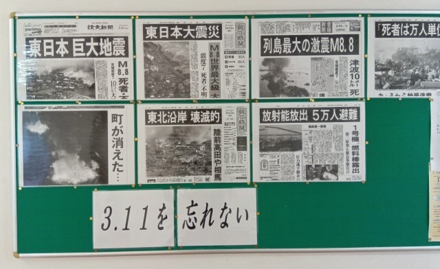 写真は、2階廊下の掲示物です。東京に住む私たちができることを一人ひとりが考えるきっかけになるといいと思います。本日、北沢中学校では、大規模地震を想定した避難訓練を行います。真剣に訓練を行いたいと思います。(副校長)