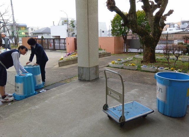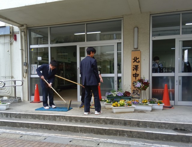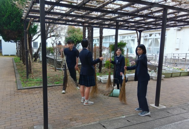 1年生は、体育館外の清掃活動