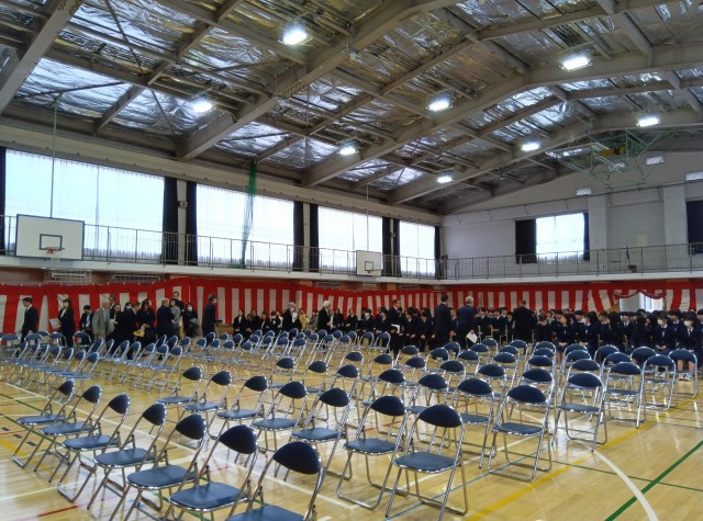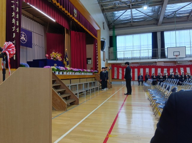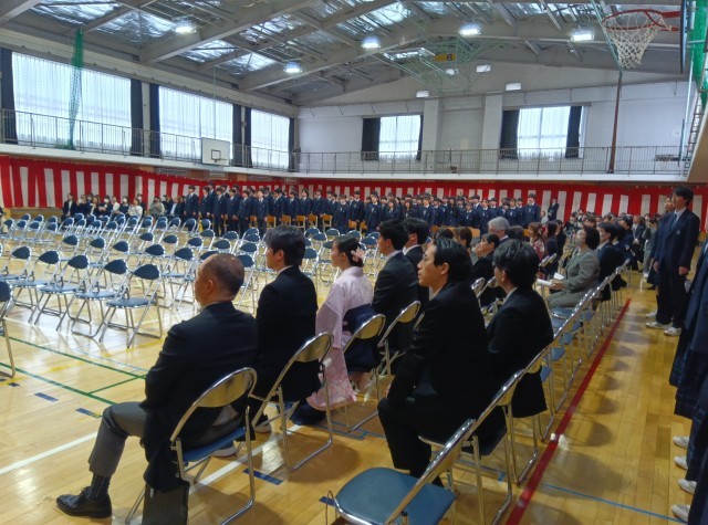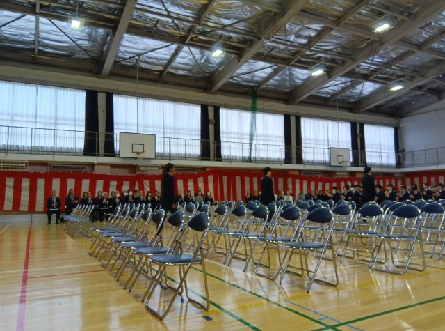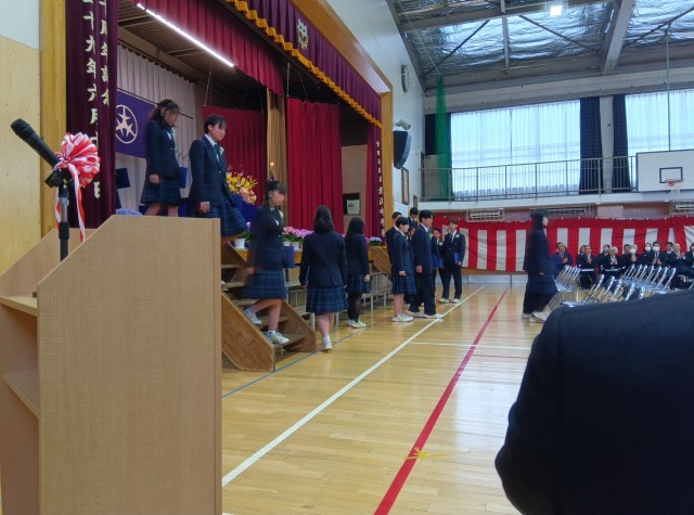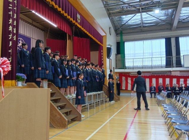大きな拍手で卒業生を見送ります