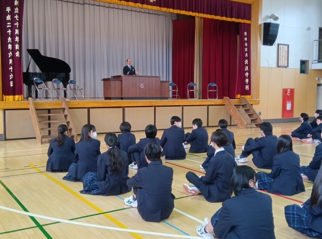 1.2年生の集合、整列の立派な態度にお褒めのことばがありました。