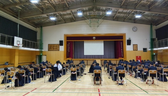 さて、写真は、昨日の1年生のいじめ防止プログラムの様子です。75分間の講師の方のお話を1年生の皆さんはよく聞き、よく考え、最後には感想用紙に表現しました。講師の方から「疲れていたらウトウトしても大丈夫、表現できなければ心の中て考えればいいよ、感想はひとことでも大丈夫、たくさん書きたかったら裏に書いてもいいよ」といろんな生徒がいることを踏まえた声がけをしていただき、誰もが安心してその場にいることかできました。講師の方の世の中から少しでもいじめを減らしたい、自分もみんなも大切にしてほしいという思いか、ひしひしと伝わりました。生徒の皆さんに緊張が走ったのは、赤いハートの場面です。赤いハートは紙でできています。傷つくと破れたりくしゃくしゃになったりします。その後、どんなに平らに伸ばしても、その傷はもとには戻りません。人の心も同じです。講演の最後の生まれてきてくれてありがとうという詩。一人ひとりがかけがえのない大切な存在であることを伝えていただきました。