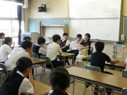 7月13日に、2年生いじめ防止プログラムの最終回を実施しました。今回は、どこまで近づいても大丈夫なのかという「心の距離」を代表生徒に実演してもらい、その後、ロールプレイを行い、人との接し方やどのように対応すれば、お互いにいやな思いをしないか等を学び、今自分たちでできることを考えました。