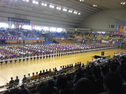 8月21日北海道旭川大雪アリーナにおいて、全国中学校バレーボール大会の開会式が行われています。各ブロックを勝ち上がった代表男女各32チームで明日から試合が行われます。1回戦は、旭川総合体育館で11時50分から長崎県代表の諫早市立諫早中学校と対戦します。全国制覇を目指して頑張ります。