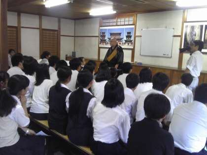 薬師寺に到着しました。お坊様のお話を聞きます。雨も上がり、その後見学します。
