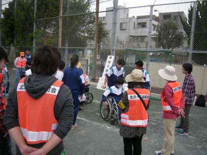 10月10日(土)に北沢地区防災訓練が実施されました。地域ごとの学校に集合し、1年生全員が、住んでいる地域に分かれ、防災訓練に参加しました。災害が発生したときの期待に応えられるように、1年生も熱心に訓練に参加していました。集合時、車椅子搬送訓練、消火訓練の写真を掲載しました。