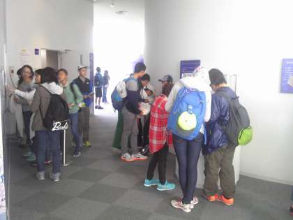 富士山山頂にあったレーダードームについての資料や寒さ体験をしています。