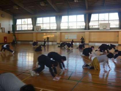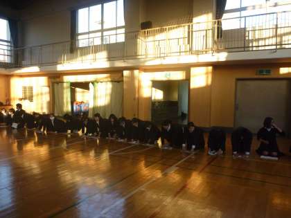 12月22日に生徒会が主催した「ぴかぴか計画」を実施しました。今回はボランティアによる体育館清掃です。役員以外に28名の参加者があり、体育館や舞台の床をぞうきんで水拭きをしました。一生懸命に取り組みました。