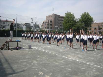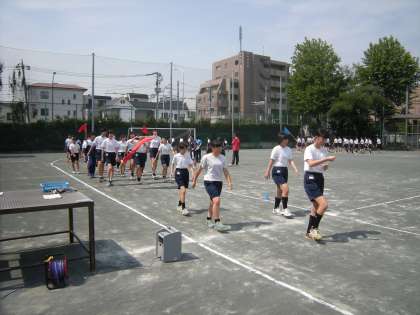 5月23日(月)1校時に全校練習を行い、入場行進、開閉会式の練習とラジオ体操を行いました。24日(火)から朝練習(7:40〜8:15)が始まりました。学年種目や赤青対抗全員リレーの練習を行っています。6月4日(土)の運動会本番に向けて、頑張ります。