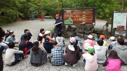 1日目の午後は、河口湖フィールドセンターの見学です。ガイドさんの案内で、樹海の中に入って自然観察を行います。
