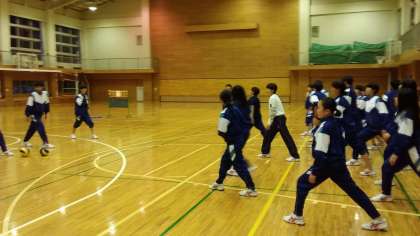 夕食後は、学園の体育館を使って運動会の練習を行いました。もちろん、練習前の準備運動は忘れません。