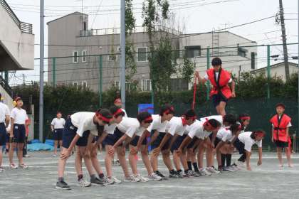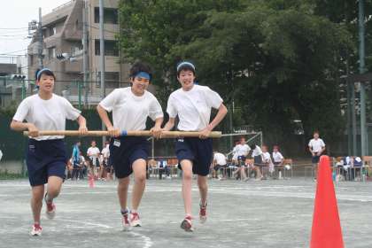 本日の運動会、午後の部では赤青組対抗全員リレー、各学年の学年種目、赤青組対抗代表リレーが行われました。最終結果は、1年紅組281点、1年青組316点、2A(赤組)346点、2B(青組)313点、3A(赤組)340点、3B(青組)329点、となり、色別対抗戦の結果は赤組605点、青組603点という、わずか2点差で勝敗が決まりました。どうしても勝ち負けに目がいってしまいますが、生徒全員が全力を出し切った大変素晴らしい運動会でした。今日の経験を、今後の学校生活に生かしてもらいたいと思います。最後になりますが、ご来校いただきました来賓の皆さま、保護者の皆さま、生徒に対して温かい声援をいただき本当にありがとうございました。