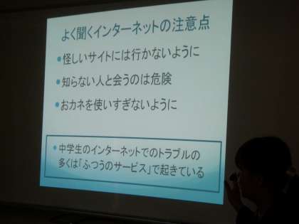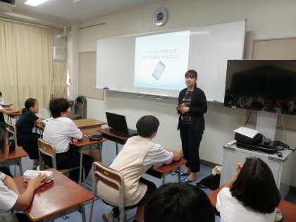7月8日(金)の6時間目、1年生を対象に「ネットリテラシー醸成講座」を開催しました。専門の会社の方を講師としてお招きして、インターネットやソーシャルメディア等との上手な付き合い方や注意点について、身近な例や分かりやすい例を交えながら説明をしていただきました。