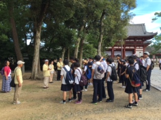 2日目は、ガイドさんの案内で、東大寺、奈良公園を散策します。全員元気にスタートしました。