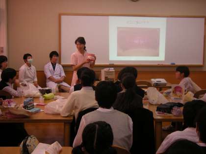 10月20日に、学校歯科医の川瀬 勝先生や応援の川瀬 雄治先生、歯科衛生士の方々が講師となり、口腔衛生指導を行いました。虫歯や歯肉炎の原因を知り、歯磨きの大切さを学び、正しい歯磨きの方法を実践しました。