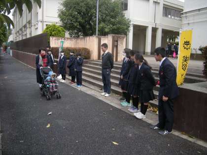 毎週水曜日に、生徒会役員と委員会の生徒が登校する生徒にあいさつをする「あいさつ推進運動」を実施しています。今までは、昇降口で行っていましたが、10月からはボランティアを募り、正門や北門で行い地域の方々にもあいさつをしています。地域の方々からもあいさつが返ってくるようになり、意欲が高まってきています。これかもよろしくお願いします。