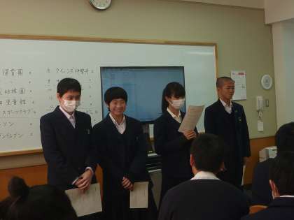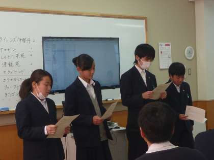 10月19日〜21日に行った職場体験の発表会を11月12日に行いました。それぞれの仕事の内容ややりがい、苦労した点や喜びなどを発表し、18事業所の体験の情報を共有しました。この体験を自分の将来を考えるきっかけとし、現在の学習への意欲を高めてほしいと思います。