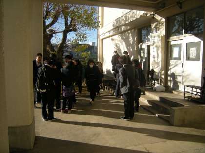 2月3日 2年生校外学習 8時30分に全部の班が出発のチェックを終了し、元気に出かけました。
