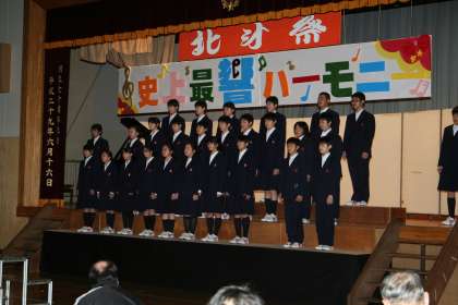 3月11日(土)に北斗祭を実施しました。第1部では、合唱コンクールを行いました。各クラス団結をして、心を1つにして気持ちのこもったハーモニーを体育館に響かせていました。