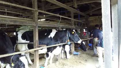 乳搾りの次は、エサやり体験とブラシ掛け体験に挑戦です。