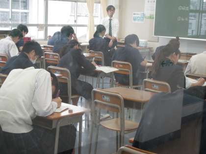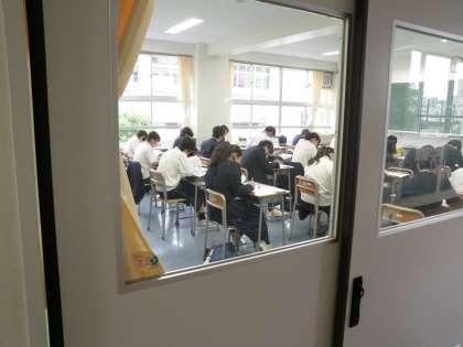 今日は一学期の中間考査の1日目でした。1年生にとっては初めての定期テストです。1年生はもちろん、2年生も3年生もみんな真剣にテストを受けていました。