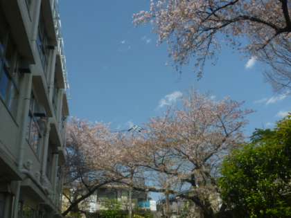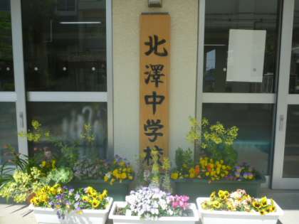 校内に沢山ある桜の花は満開を迎え、昨日の風でかなり散っていますがとても綺麗です。玄関の花も綺麗に咲き誇って、みんなの登校を待ってます。