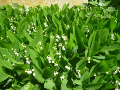 保健室前に、こんなに綺麗なスズランが花を可憐に咲かせています。