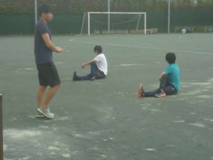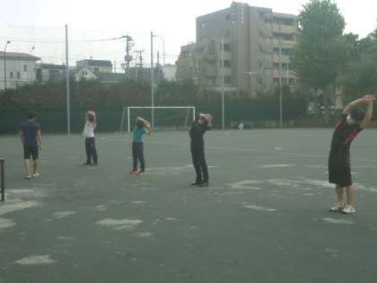 体育の課題の「北沢ストレッチ」を先生たちを生徒に、研究授業をしています。