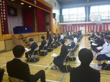 最後に、教務主任の先生から、今日のこれからの予定が説明され、各クラスごとに学活を行っています。