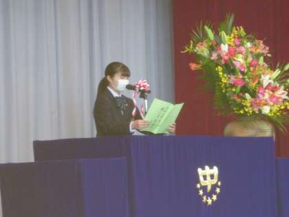 在校生歓迎のことばは、生徒会役員から、後輩になる1年生に温かい歓迎のことばが送られました。
