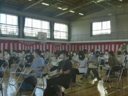 入学式後、全ての椅子などを先生たちで消毒し、2時から行いました。