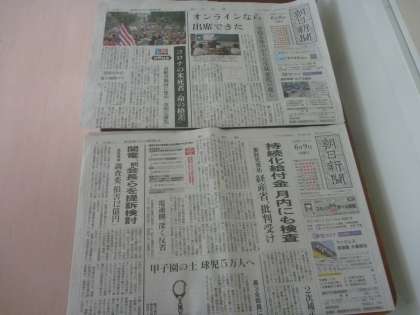 廊下には、今月は「朝日新聞」の朝刊が毎朝届き、3年生が誰でも読めるように、教室前の廊下に置いています。