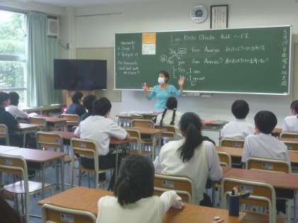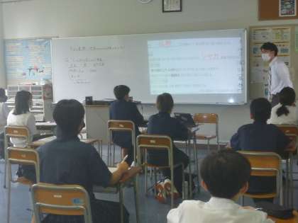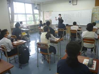 数学は、テストの評価について。みんな姿勢がいつもより正しく真剣に聞いています。