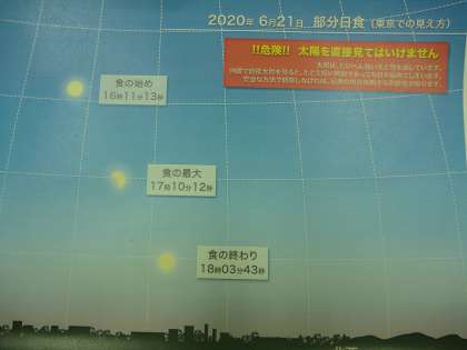 日曜日の夕方、予定では、16時11分から日食が始まり、17時10分が日食が最大で、18時3分日食が終わりの予定だそうです。