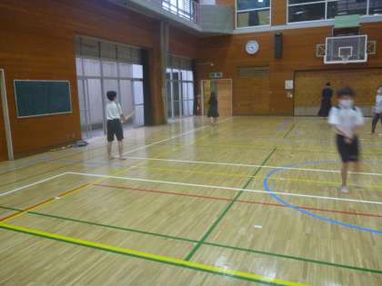剣道部は、体験の1年生が5人参加で、すり足の練習をしています。なかなか難しいようです。