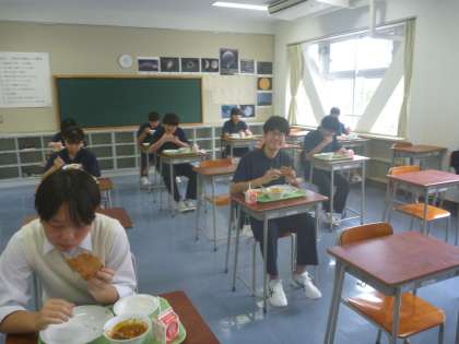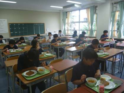先週まで、1時5分位が「いただきます」だった1年生が12時55分に食べていました。素晴らしい〜。3年生は、笑顔で食べていました。