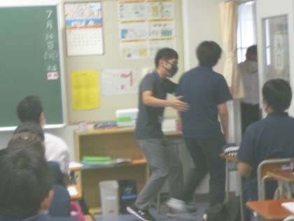 3年生は特別な教科「道徳」で、日本人の「おもてなしの心」の単元で、先生と生徒が旅館から帰る時の丁寧すぎる旅館の方のお見送りとお客さんの実演と、さらっとしたお見送りの違いを実演していました。「どっちがいいかな?」の発問に「丁寧すぎる方は、早く帰れとせかされているようで、嫌だ」という意見がありました。