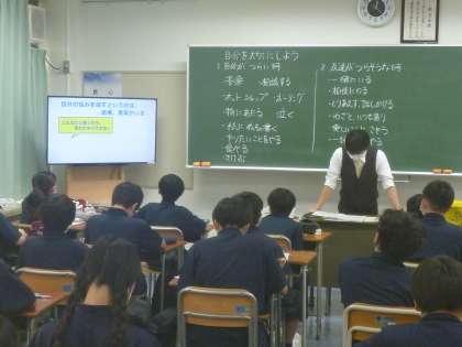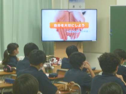 4時間目、1Aは「自分を大切にしよう」ということで、自分が困って誰かにSOSを出したいとき、友達が困っていてSOSを出したときに、友達としてどのようにしたらいいかについて勉強しました。