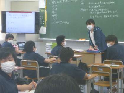 2年生は、「命」について。「命」という言葉から、思いつくことを挙げて、プリントにまとめ、活発に発言していました。