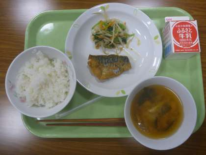 今日は、ご飯・みそ汁・鯖のカレー揚げ・ごま和え・牛乳です。
