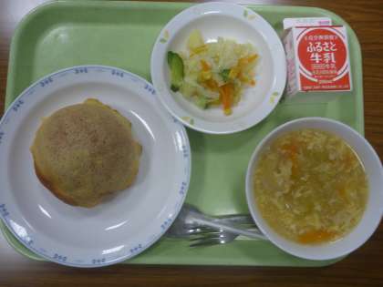 今日の給食は・・・ 公開日 2020/07/22 更新日 2020/07/22 できごと ビスキュイパン・卵と野菜のスープ・ポテト入りフレンチサラダ・牛乳です。 ビスキュイパンは、パンの間にイチゴジャムが入ったメロンパンのようなパンで、初めて食べた1年生は「めっちゃ美味しい」と。