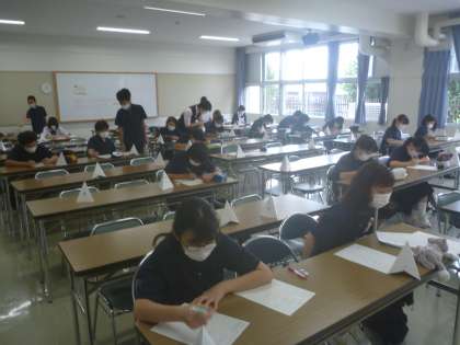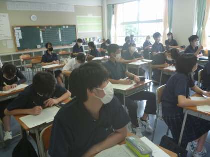 今日も最高気温が・・・と天気予報で言ってました。教室はクーラーをかけ、換気で窓もあけて授業をしていますが、休み時間は水筒で水分補給させて、熱中症にならないように配慮してます。