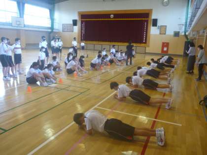 2年生の交流を深めるために、6時間目体育館で、プランク(体幹を鍛える)・100マス計算・くつ飛ばしなどを行い盛り上がり、交流が深まりました。
