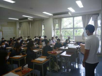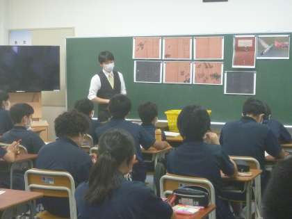 1年生は、行動に移す強い意志という主題で「ハチドリのひとしずく」という資料で行いました。強く正しく生きることに喜びを見出し、自分に出来ることを考え、実践する態度を養いました。